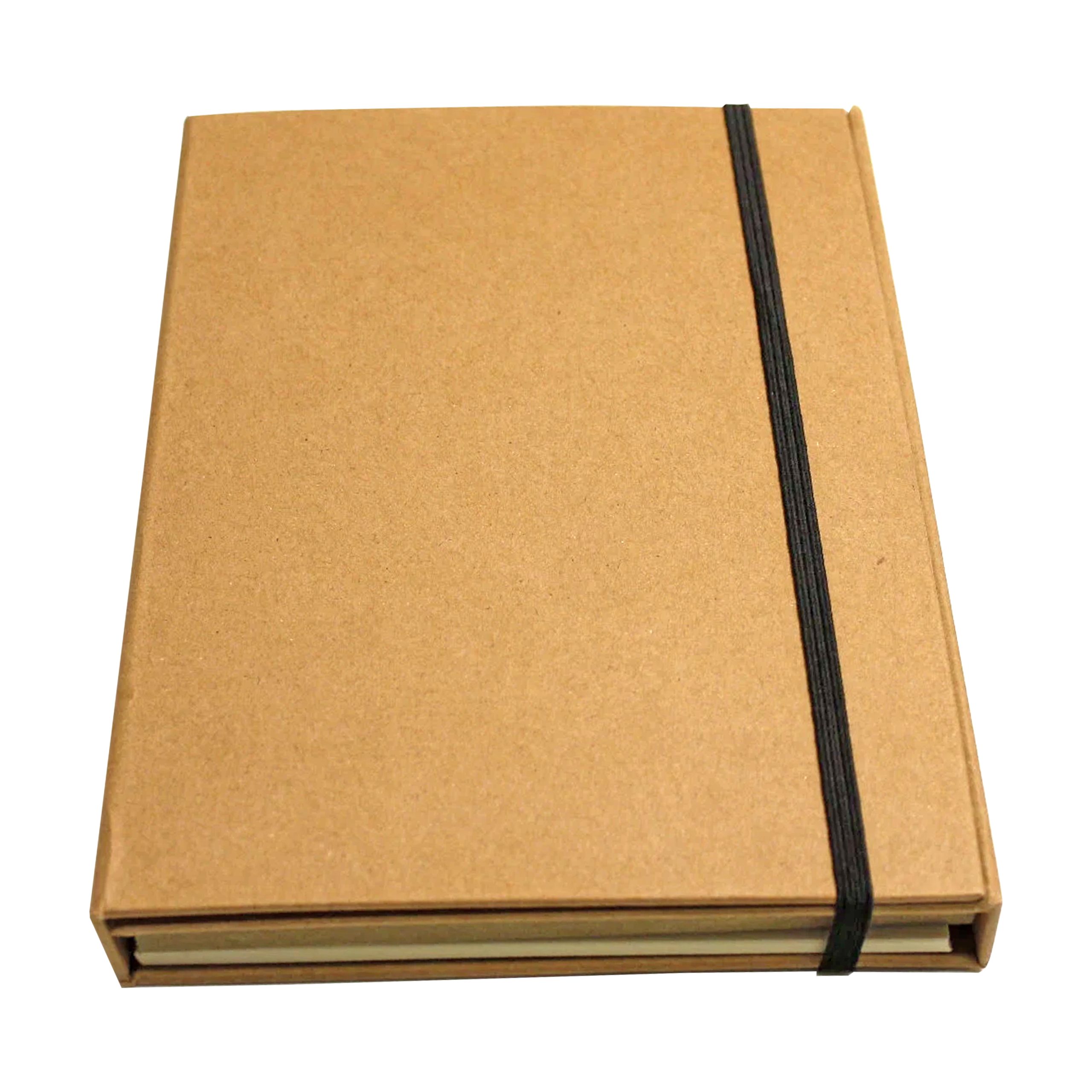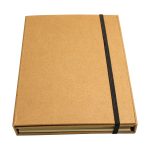 Libreta Ecológica con tapas de cartón reciclado, 70 hojas interiores blancas (croqueras). Incluye cierre elasticado y bolígrafo ecológico.8.8 x 13.8 x 0.8 cm.