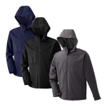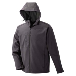 Chaqueta Softshell “IMAGEN” 100% poliéster de 320gr/m2 con gorro (capucha), para HOMBRE, manga larga. Contiene bolsillo interior para esconder reverso del bordado y cierres impermeables (principal y bolsillos). Presentación individual en bolsa de polipropileno transparente. Gris -Negro – Azul Marino