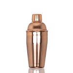 Coctelera de Acero inoxidable 304 SS de 0.8mm de espesor, con superficie lisa encobrizada. Producto BPA FREE, para el contacto con líquidos y alimentos. Capacidad 500ml. Presentación en plástico burbuja + caja de regalo de cartón negro.