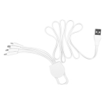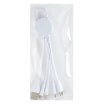 Connect Multicargador 5-en-1 con cables plásticos TPE engomado blanco y base plástica ABS blanco con mosquetón. Multi-cables con terminales de carga USB / Micro USB / Mini USB / iPhone / Type C. Compatible con dispositivos Android, Apple y Type C. Presentación en elegante bolsa OPP con orificio para colgador de ganchera. Producto con aprobación CE, ROHS, FC. 2.8 x 25 cm.