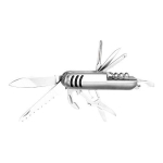 Cortaplumas de Acero Inoxidable con 10 funciones. Incluye funda de tela negra + caja de regalo plateada.