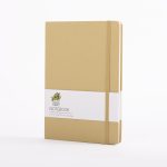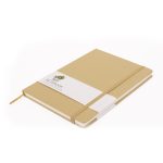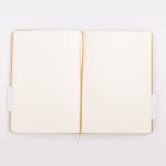 Libreta tamaño A6, con cubierta de cartón piedra forrada en tela lino de 2mm de espesor. Interior 80 hojas lineadas amarillas de 80gsm. Incluye banda separador de hojas al tono. Presentación individual en bolsa de polipropileno.9 x 14 x 1.3 cm.