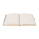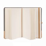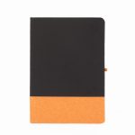 Cuaderno tamaño A5, con cubierta de cartón piedra forrada en PU simil cuero de 3mm de espesor. Interior 80 hojas lineadas amarillas de 80gsm. Incluye banda separador de hojas al tono. Presentación individual en bolsa de polipropileno.14.7 x 21.1 x 1.5 cm.