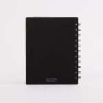 Cuaderno Ecológico con Tapas Duras de Color, en Cartón Reciclado 650gsm, 70 hojas interiores cuadriculadas y anillado metalico doble cero. Incluye Bolígrafo Ecológico de cartón troquelado, incrustado en la tapa.16 x 21 x 1 cm.