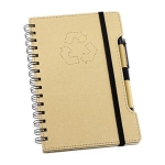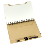 Cuaderno Ecológico Tapa Dura Cuaderno Ecológico con Tapas Duras de Color, en Cartón Reciclado 650gsm, 70 hojas interiores cuadriculadas y anillado metalico doble cero. Incluye Bolígrafo Ecológico de cartón troquelado, incrustado en la tapa.16 x 21 x 1 cm.