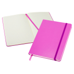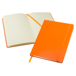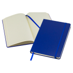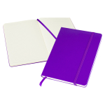 Cuaderno modelo “Colorskine” tamaño A5, con cubierta de cartón piedra forrada en PU simil cuero de color de 1.5mm de espesor. Interior 80 hojas lineadas amarillas de 80gsm. Incluye banda elástica y huincha separador de hojas al tono. Presentación individual en bolsa de polipropileno.14.2 x 21.4 x 1.3 cm.