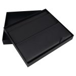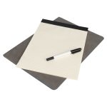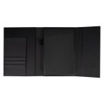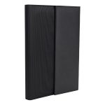 Libreta de Apuntes con 50 hojas lisas amarillas de 13.5 x 20.5 cm., presentada dentro de fina carpeta de PU negro con interior porta-documentos, porta-bolígrafo y cierre imantado, protegida por lámina de tela no tejida color negro. Presentación en elegante caja de cartón piedra esmaltado negro y funda de papel negro. Un gran regalo para nivel ejecutivo. Tamaño: Libreta 13.5 x 20.5 x 0.6 cm / Carpeta 23 x 16.8 x 3.3 cm / Caja 24.3 x 21 x 3.5 cm.