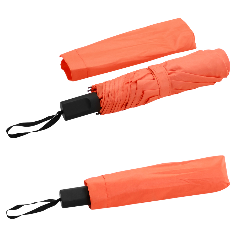 Deluxe Paraguas corto con 8 cascos de tela 190T PONGEE. Cuerpo telescópico de 3 secciones y varas reforzadas de Fibra de Vidrio color negro, sistema de apertura manual. Mango recto de EVA negro con cinta negra para colgar. Incluye funda al tono de 190T PONGEE.Tamaño: Ø 90 x Alto 58 cm (abierto) / Ø 4.8 x Alto 26.5 cm (cerrado).