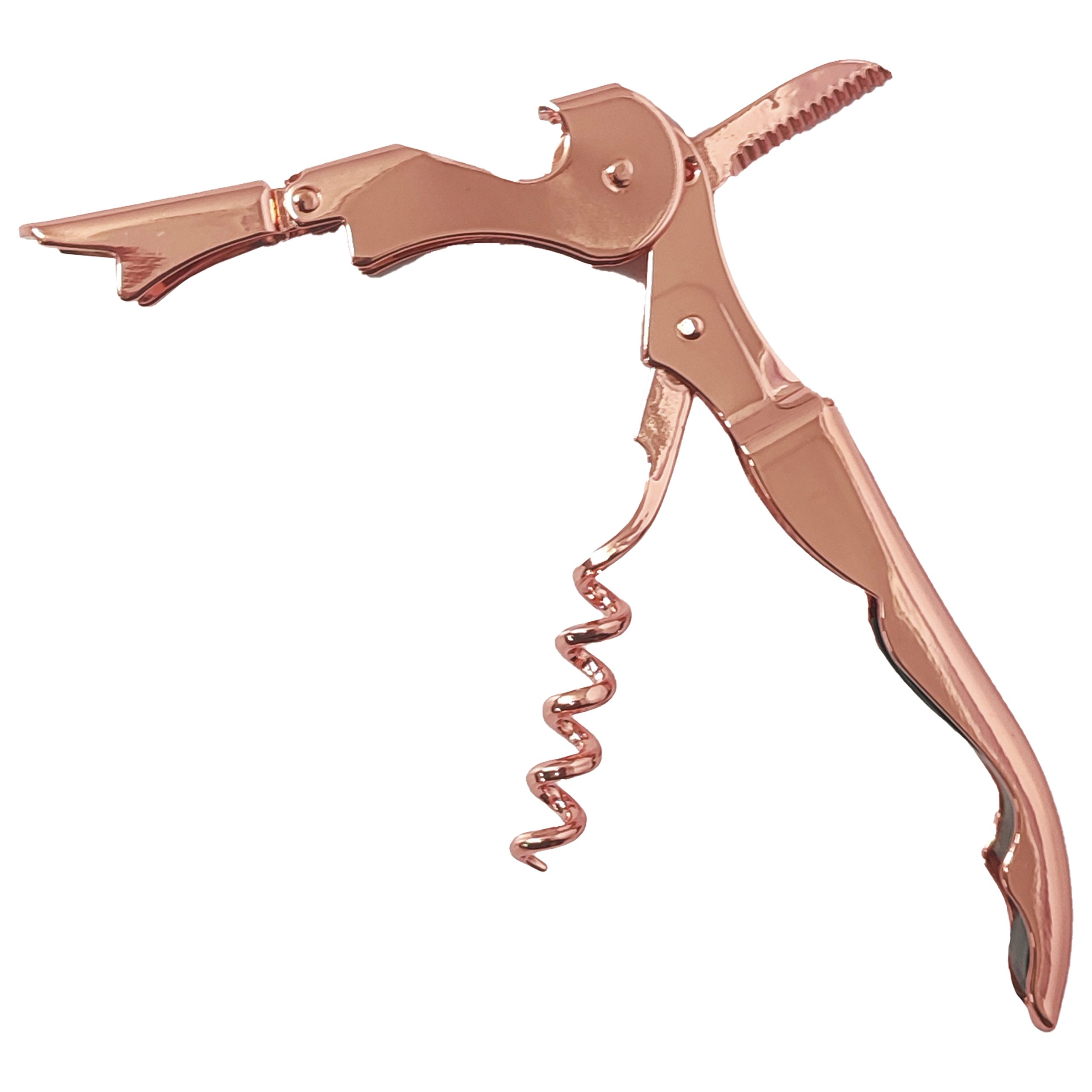 Descorchador de vinos electro plateado en color cobre. Presentación en estuche de cartón laminado con cuna interior de terciopelo.