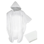EMERGENCY PONCHO – Capa de Agua con capucha, en Polietileno de 0,03mm de espesor. Presentación en bolsa de polipropileno transparente con cierre tipo Ziploc. Tamaño: 127 x 101 cm aprox.