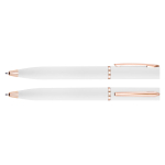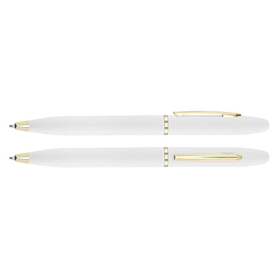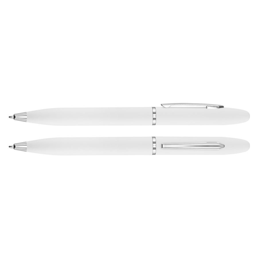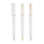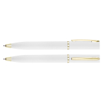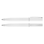 Fino bolígrafo Metálico blanco modelo “Trooper”, con terminales metálicos. Diseño simple y moderno. Escritura azul.