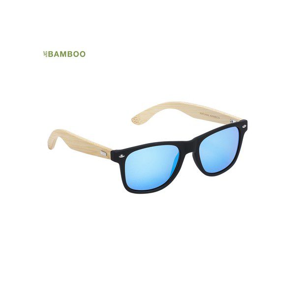 Gafas de sol de línea nature con protección UV400. Montura negra en resistente material PC y patillas en bambú. Lentes AC (acetato de celulosa) de acabado espejo, disponibles en variada gama de colores. Presentada en atractiva caja de diseño eco. Lentes Efecto Espejo. Protección UV400.