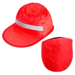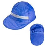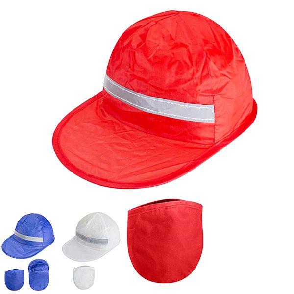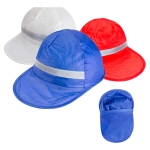 Gorro promocional plegable de poliéster, con banda reflectante en el frente. Se guarda plegado en bolsita ovalada de poliéster. Simple, económico y fácil de imprimir o sublimar, ideal para promociones de verano. Tamaño: 20 x 32 x 13 cm aprox / Bolsita: 10 x 11 cm aprox.