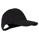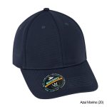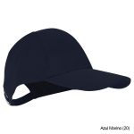 Gorro tipo Jockey de poliéster, con protección UV UPF 50+, con traba metálica plateada y pasador metálico posterior.