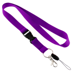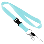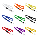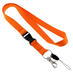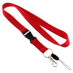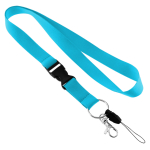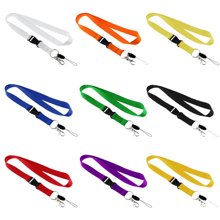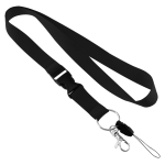 Lanyard Porta-Credencial y Accesorios de Polyester liso de 2 cm. de ancho para sublimación. Incluye tip-top plástico negro, mosquetón metálico y cordón negro porta-celular y accesorios.