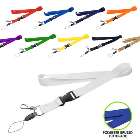Lanyard Porta-Credencial de Polyester texturado de 2cm. de ancho, con Mosquetón Metálico. Sugerencia de impresión Serigrafia.