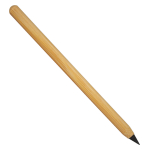 Lápiz eterno ecológico de madera de Bamboo, con interior de Carburo de Tungsteno y punta de 0.5mm de espesor. Contiene tapa plástica de PP translúcido. Escritura negra tipo lápiz grafito, se borra normalmente con goma de borrar común.