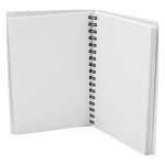 Libreta Ecológica blanca de Croquis, con Tapas Duras de Cartón Reciclado 650gsm, 80 hojas interiores prepicadas blancas de papel reciclado y anillado metálico doble cero. Presentación en bolsa plástica OPP transparente.