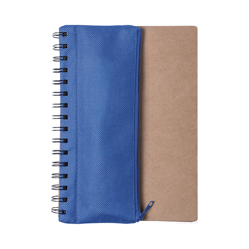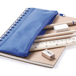 Libreta ecológica con estuche integrado y útiles (bolígrafo, 2 lápices grafito , regla, sacapuntas y goma para borrar). Presentación en bolsa individual.