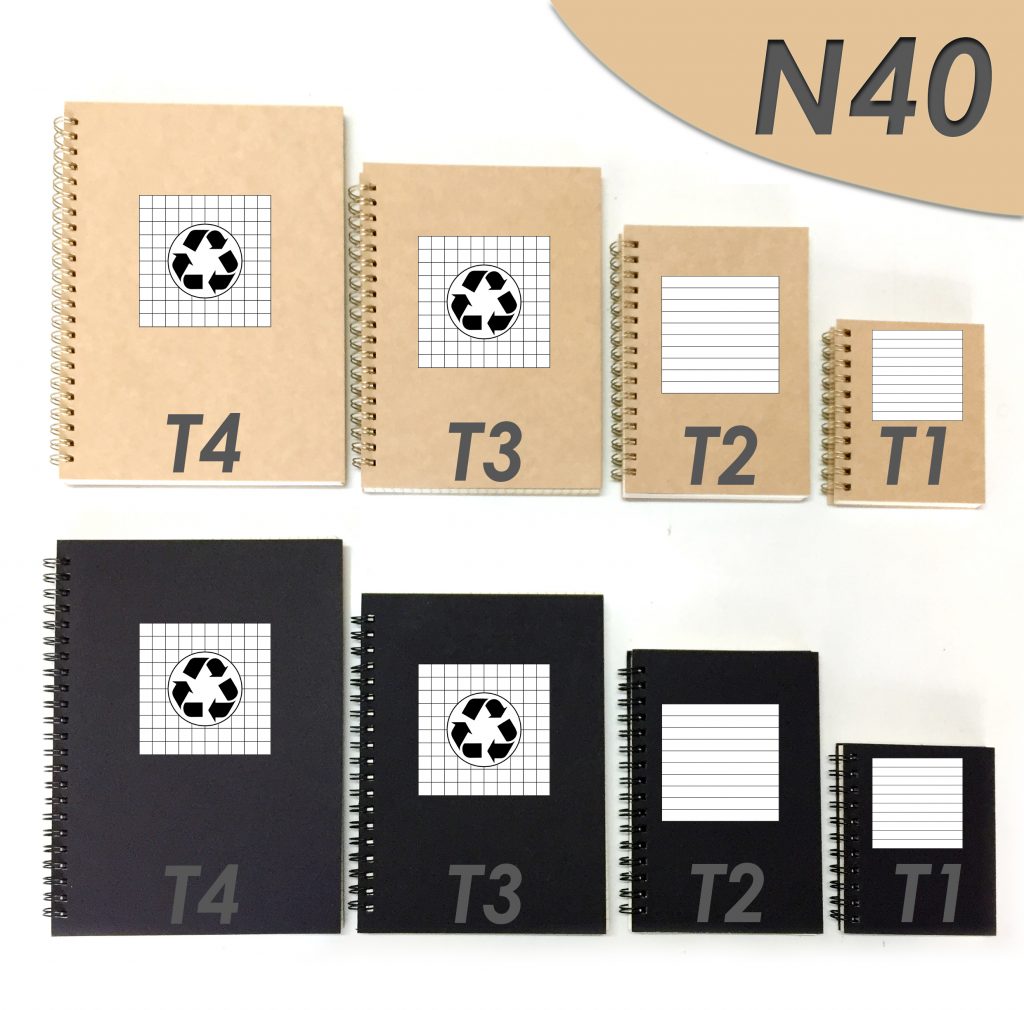 N40-T4 Tamaño 21cms. x 15cms. (Cuadriculadas con signo de reciclaje). Tapa dura de 500 grs.