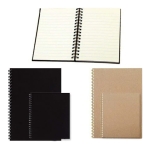 Libreta ecológica simple con anillado metálico doble cero en colores negro y kraft.