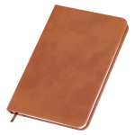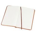 Libreta tamaño A6, con cubierta de cartón piedra forrada en PU simil cuero de 3mm de espesor. Interior 80 hojas lineadas amarillas de 80gsm. Incluye banda separador de hojas al tono. Presentación individual en bolsa de polipropileno.9 x 14 x 1.5 cm.