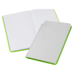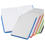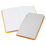 Libreta tamaño A6 modelo “Silver”, con cubierta de PU plateado de 1.5mm de espesor, con detalle interior de color. Interior 80 hojas lineadas blancas de 80gsm. Presentación individual en bolsa de polipropileno.10 x 14 x 1 cm.