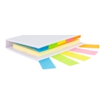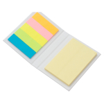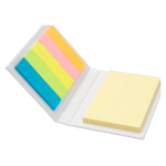 Libretita Memo set Ecológico con tapa dura de cartón forrado blanco. Incluye 125 banderitas adhesivas de colores + 50 notas adhesivas amarillas.Ø 8.5 x 0.3 cm.