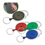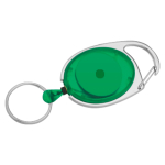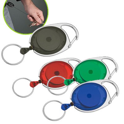 Llavero con Mosquetón y extensor retráctil, en color traslúcido.