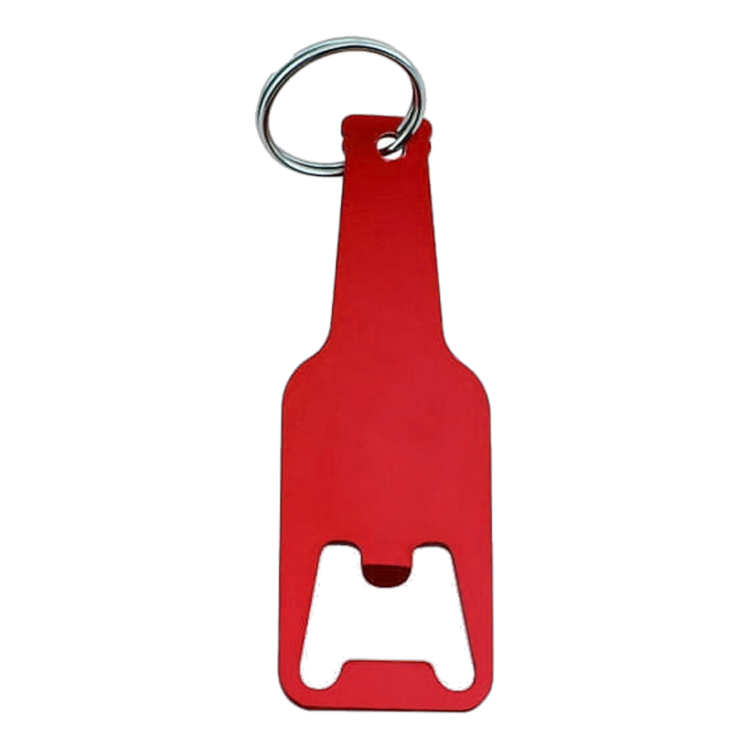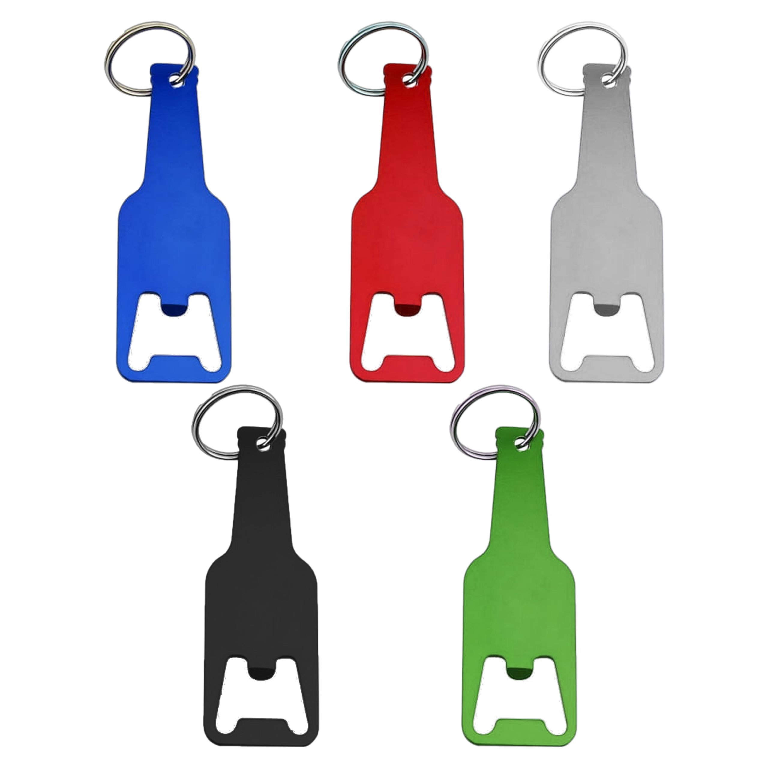 Llavero destapador de aluminio en diferentes colores. 9 × 3 cm.