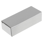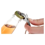 Llavero-Destapador con cuerpo plástico plateado y destapador metálico. Presentación en cajita plateada.