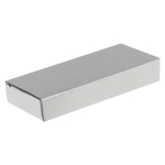 Llavero destapador de aluminio con cinta strap. Presentación en estuche de cartón laminado color plata con cuna interior de terciopelo.