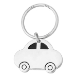Llavero metálico con forma de automóvil. Acabado brillante. Presentación en estuche de cartón laminado color negro con cuna interior de terciopelo. Tamaño: 37 x 27 x 3.8 mm. Argolla : Ø 32 mm. Material: Metal.
