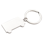 Llavero-Destapador con cuerpo plástico plateado y destapador metálico. Presentación en cajita plateada.