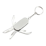 Llavero multiherramientas de Acero Inoxidable con 5 funciones. Presentación en cajita de regalo plateada. Tamaño: 4.4 x 2.7 x 0.6 cm (cerrado).