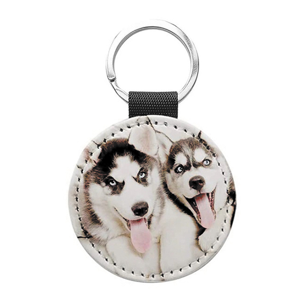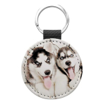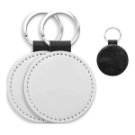 Llavero redondo símil cuero para sublimación. Presentación en estuche de cartón laminado color negro con cuna interior de terciopelo.Tamaño: Ø 51 x 5 mm. Argolla : Ø 32 mm.