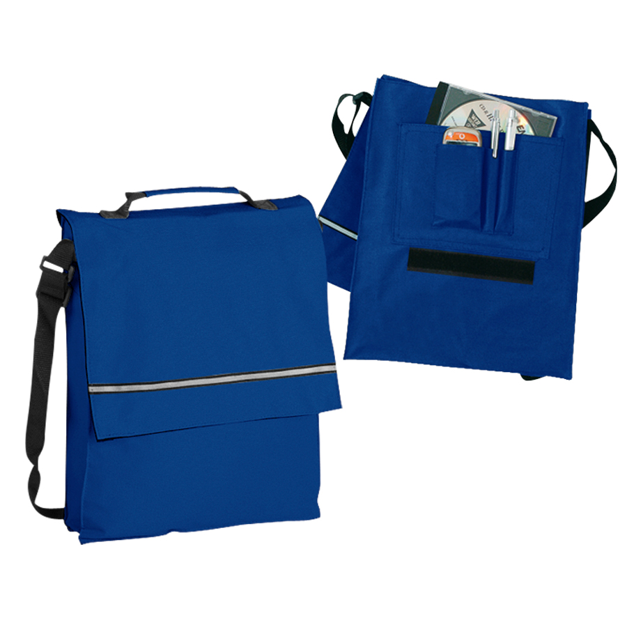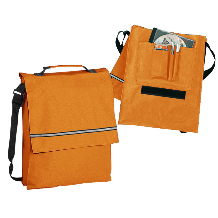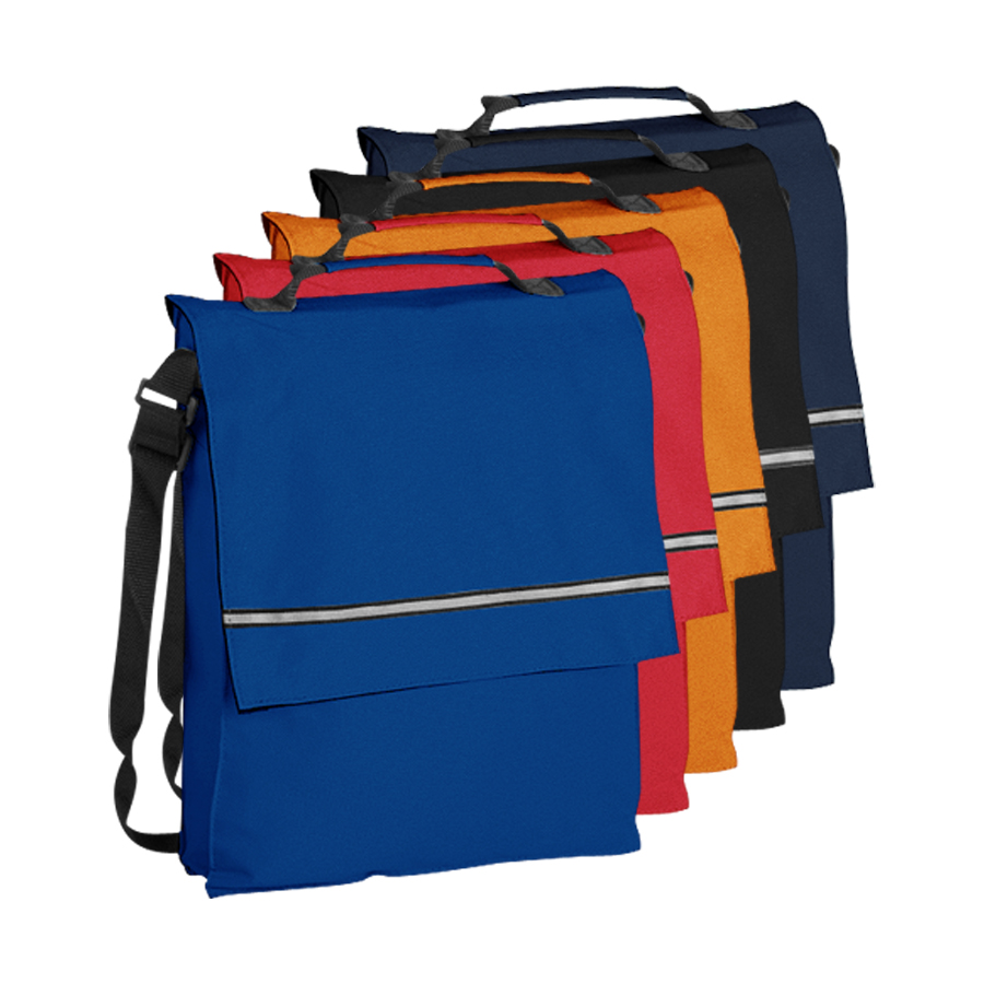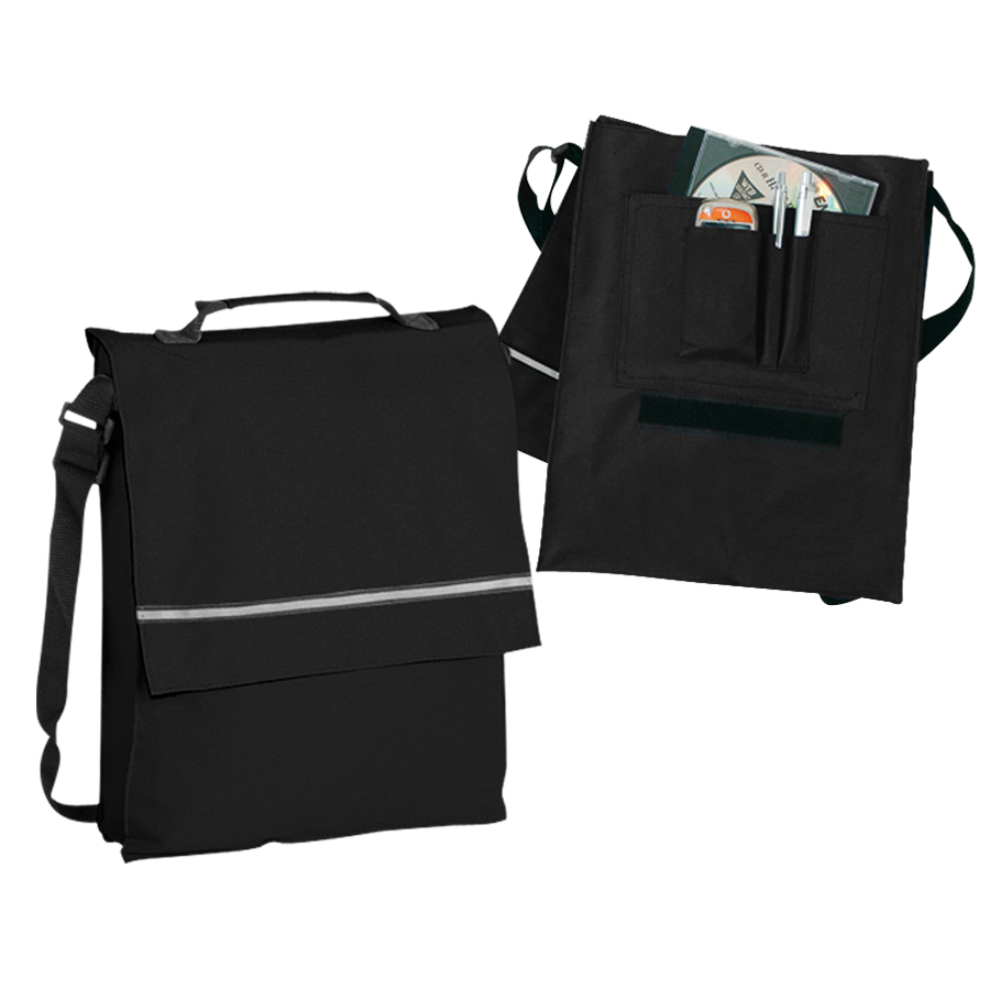 Maletín Porta documentos de tela raquelada Polyester 600D modelo “Milan”, con solapa y bolsillo interior multi-accesorios. Incluye banda reflectante en la solapa.24 x 32 x 4 cm.