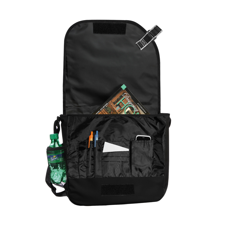 Maletín Porta documentos de tela raquelada Polyester 600D modelo "Milan", con solapa y bolsillo interior multi-accesorios. Incluye banda reflectante en la solapa.24 x 32 x 4 cm.