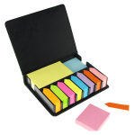 Memo Set con Tapas Duras enchapadas en madera de Bamboo. Incluye 50 notas adhesivas amarillas grandes, 25 notas adhesivas amarillas medianas y 125 banderitas adhesivas de colores.8 x 10.5 x 1.2 cm. aprox.