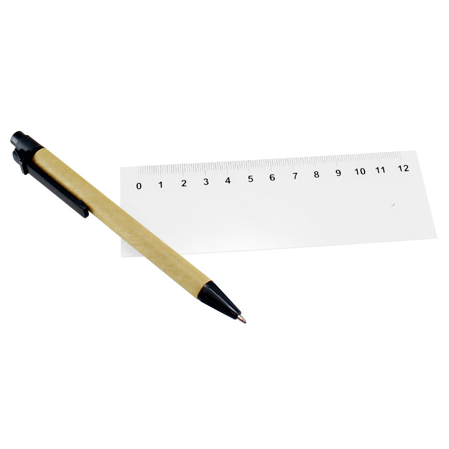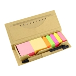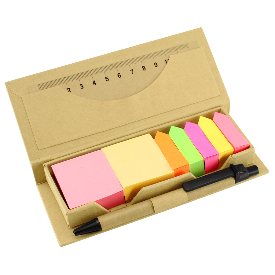 Memo Set Ecológico con Bolígrafo Ecológico escritura negra, Regla 12 cm, notas y banderitas adhesivas. Incluye 300 notas adhesivas cuadradas + 750 banderitas adhesivas de colores .