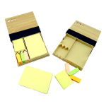 Memo set ecológico con tapa de bambú. Incluye set de post-it de diferentes tamaños. Detalles de tela, interior de plástico con divisiones.12 × 10.5 × 2 cm.