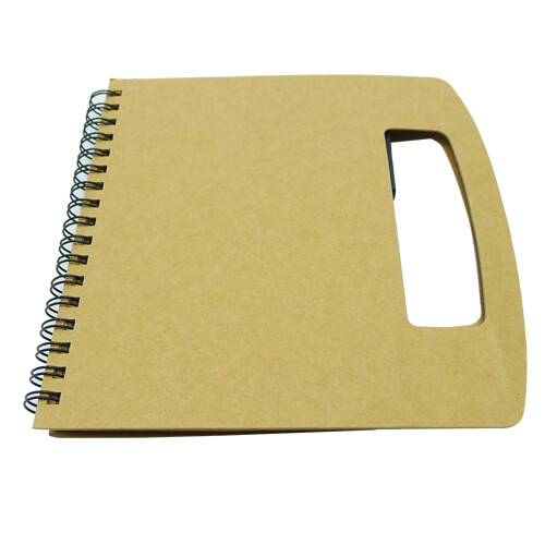 Cuaderno Ecológico Cuaderno Ecológico grande (tamaño 1/2 oficio) con tapas de cartón reciclado y anillado doble cero, 50 hojas interiores blancas (croqueras). Incluye Bolígrafo ecológico.5 x 21 x 1 cm.