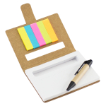 Memo set Ecológico. Incluye 1 bolígrafo ecológico corto + 125 banderitas adhesivas de colores + Block de Notas con 80 hojas blancas pre-picadas.