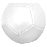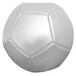 Mini-Balón de Fútbol N°1 de cuero sintético PVC 1.8mm de grosor, 12 paneles pentagonales, 2 capas, costuras a máquina, cámara de aire de goma. Incluye aguja infladora. Colores Plata Y Blanco.