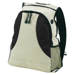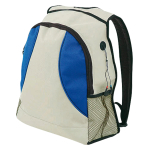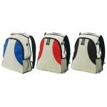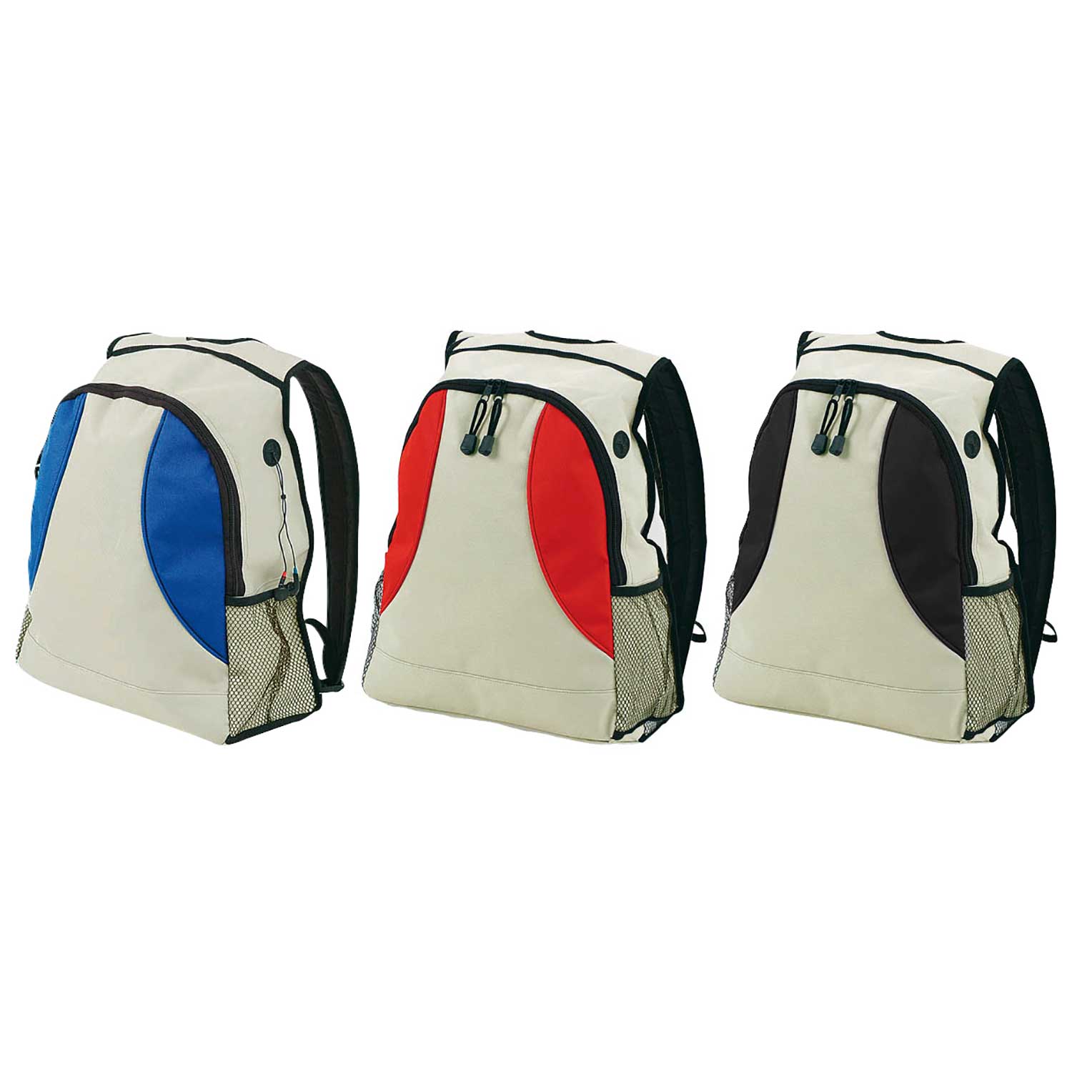 Mochila bicolor modelo “Zeus” en tela raquelada polyester 600D. Con cintas acolchadas y salida para auriculares.36 x 43 x 14 cm.