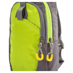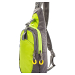 Mochila cruzada modelo «Crossback», en tela poliéster Stretch 210 Waterproof y poliéster «Ripstop». Incluye 2 compartimentos independientes + 1 bolsillo delantero + 1 bolsillo malla ajustable, gancho para colgar y hebilla de protección delantera. Reverso acolchado, con tela malla anti-transpiración para la espalda. Ideal para practicar deportes.17x36x6 cm. aprox.