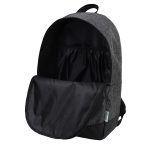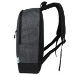 Mochila modelo «LOOK», fabricada en tela reciclada RPET, con base de eco-cuero PU 210D y parte posterior de poliéster 600D/PVC. Capacidad 18 litros, tamaño 29 x 44 x 14 cm. Incluye compartimento principal + bolsillo delantero lateral. Incluye forro interior de nylon negro. Correas ajustables.