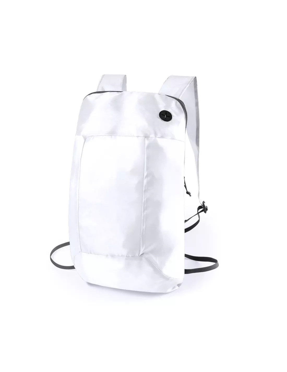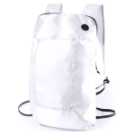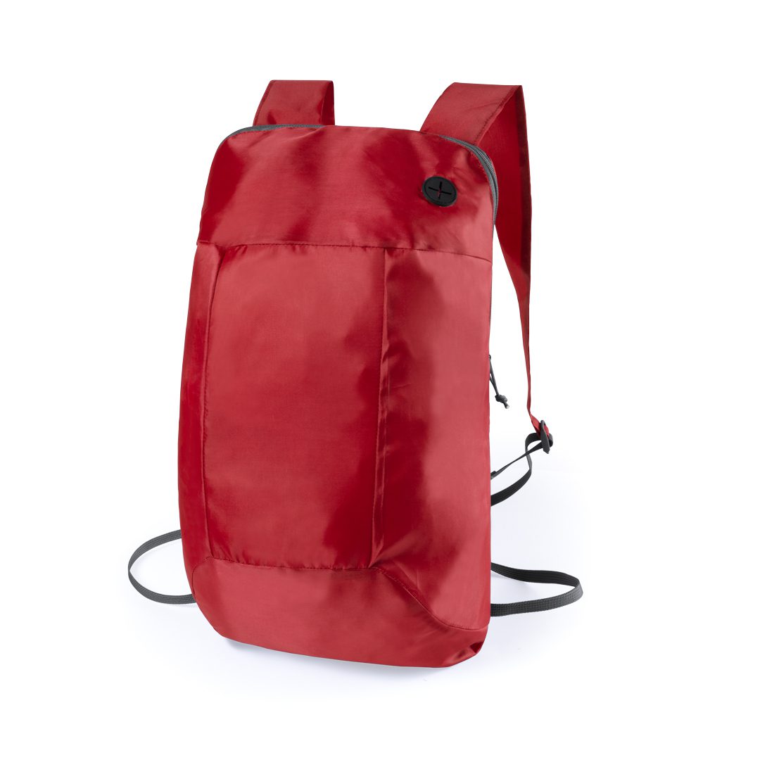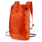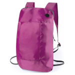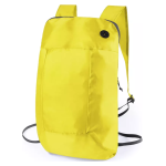 Mochila plegable en suave poliéster 210D de alegres colores, con cierre de cremallera y salida de auriculares. Con esquinas reforzadas, cintas de hombro regulables y accesorios en color negro. Plegado de pequeño tamaño.
