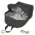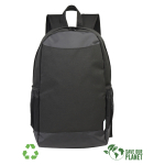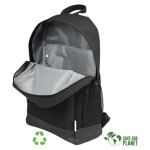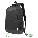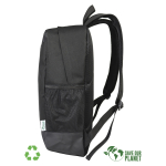 Mochila Porta-Notebook modelo «RPET». Fabricada en material reciclado RPET y poliéster 250D/PVC. Capacidad 20 litros, tamaño 29 x 48 x 14.5 cm. Incluye compartimento interior reforzado y acolchado para Laptop, bolsillo delantero y 2 bolsillos laterales con malla.29 x 48 x 14.5 cm. aprox.
