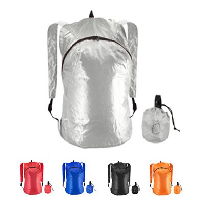 Mochila retráctil modelo “Capsule” de poliéster Ripstop 210D. Se retrae y se guarda en bolsillo interior, quedando de un tamaño cilíndrico compacto de 7 x 10 cm.